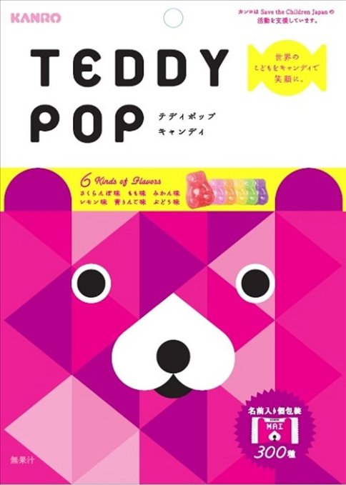 カラフルなテディが楽しい、おしゃれなアソートキャンディ。「TEDDY POP」の売上の一部はSave the Children に寄付され、世界中の子供たちに笑顔を届けます。