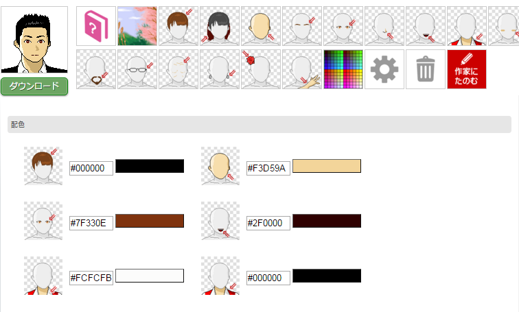 ・各パーツの名前をクリックして、それぞれ好みの形を選択