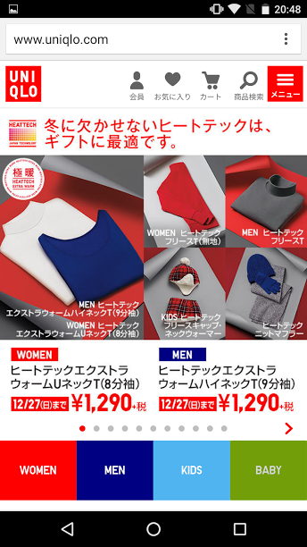 ・「Yahoo! JAPAN」「ユニクロ」のメニュー位置は左上