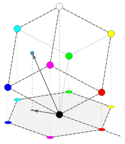 ・「正六面体で構成されるRGB」を、「HSL水平断面図である正六角形」へ再構成